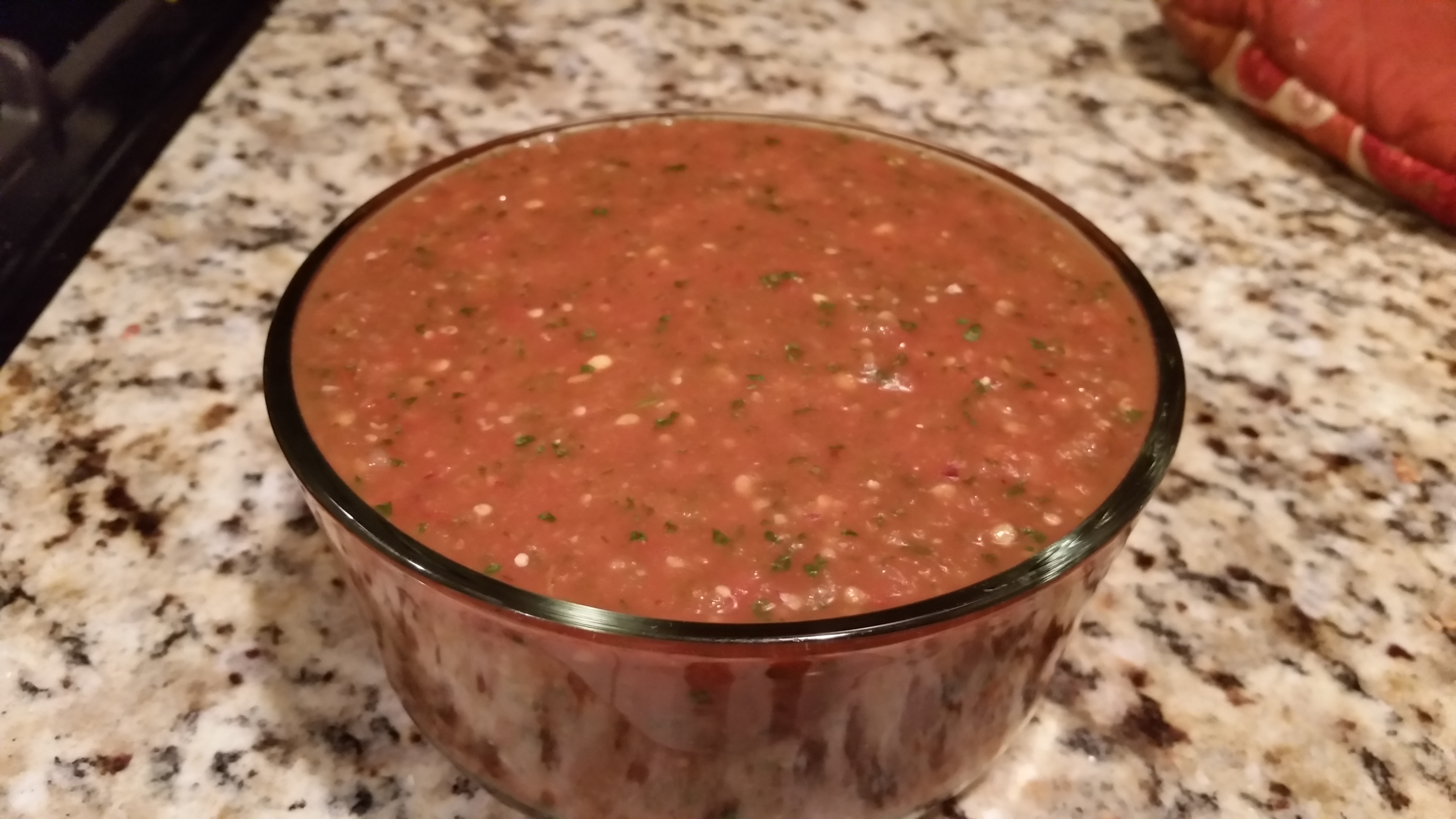 Blend the ingredients until everything is smooth…..about a minute or so. Place in to a glass dish or jar and cover. Refrigerate for at least 4 hours before serving. If you can let it sit overnight, even better!