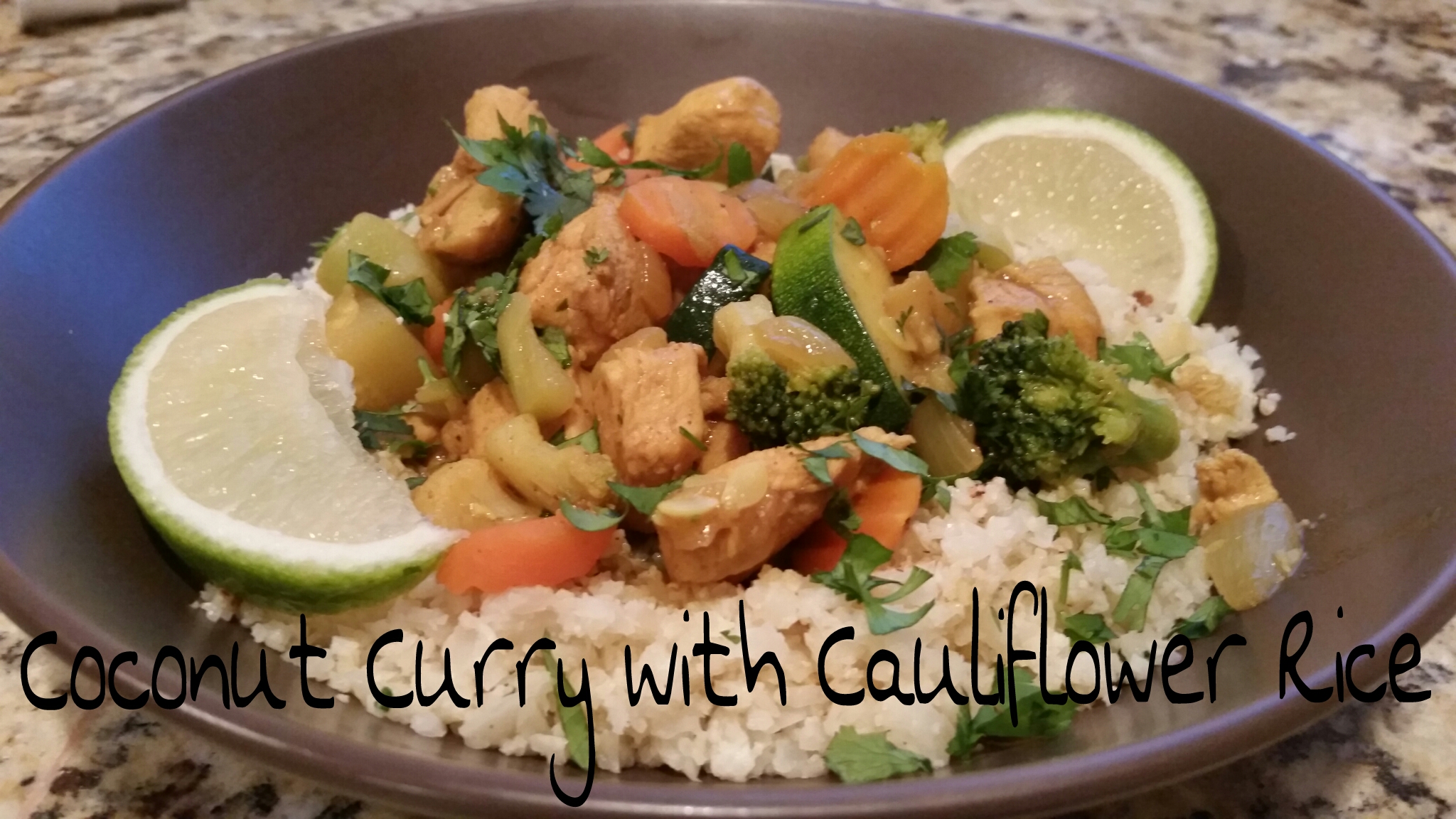 Coconut Curry with Cauliflower Rice (Paleo, Vegan options)