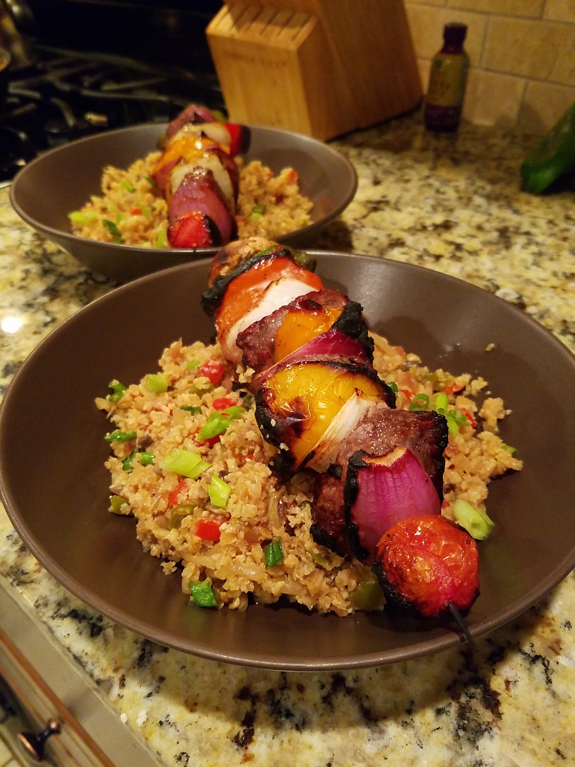 This is my spin on fried rice but using cauliflower rice. It’s full of flavor and is something the whole family can enjoy. The best part – it can be made Whole30 compliant! Enjoy!